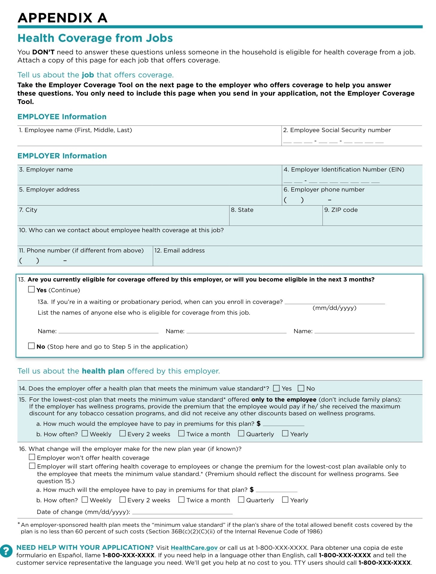 But what recently caught my eye was the Appendix requiring people to provide information about their employer coverage. Good luck with that!
