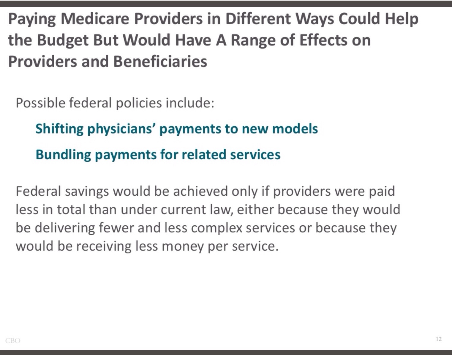 Here is a slide from a recent CBO presentation on health care spending. Aren’t things clear when you state what should be the obvious?😳