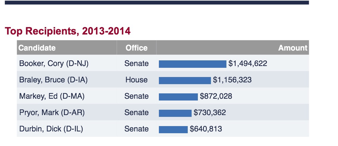 Here are recent examples of top recipients of law firm contributions (Source: Open Secrets). Is that a D I see next to their state?