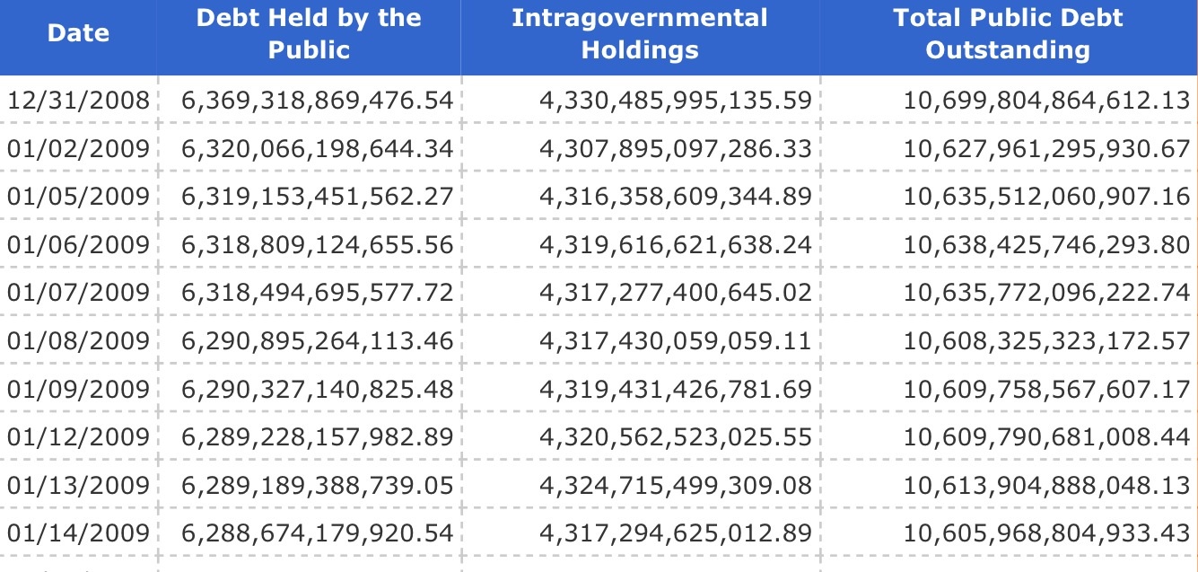 Here are the facts on national debt from the Treasury Department.
