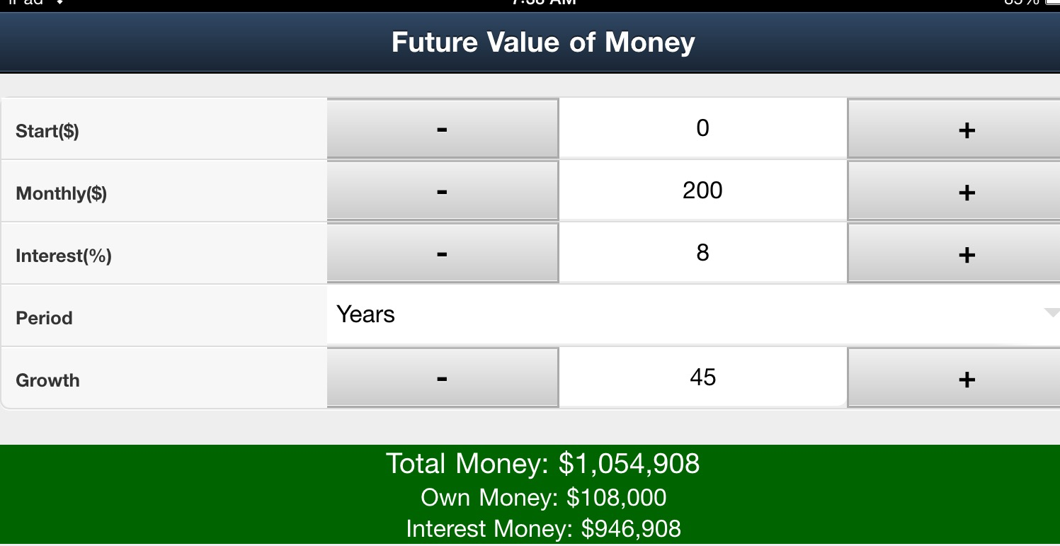 Here is the reality of what you need to save and earn starting at age twenty for forty-five years. Of course, the variables can be adjusted (save more, earn more, save longer).