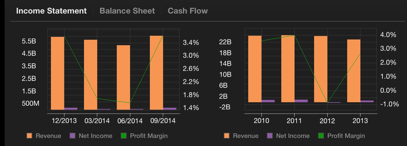 Well, you can look at Staples financials right here. It’s revenue has not been increasing, net income is flat and its profit margin is modest.