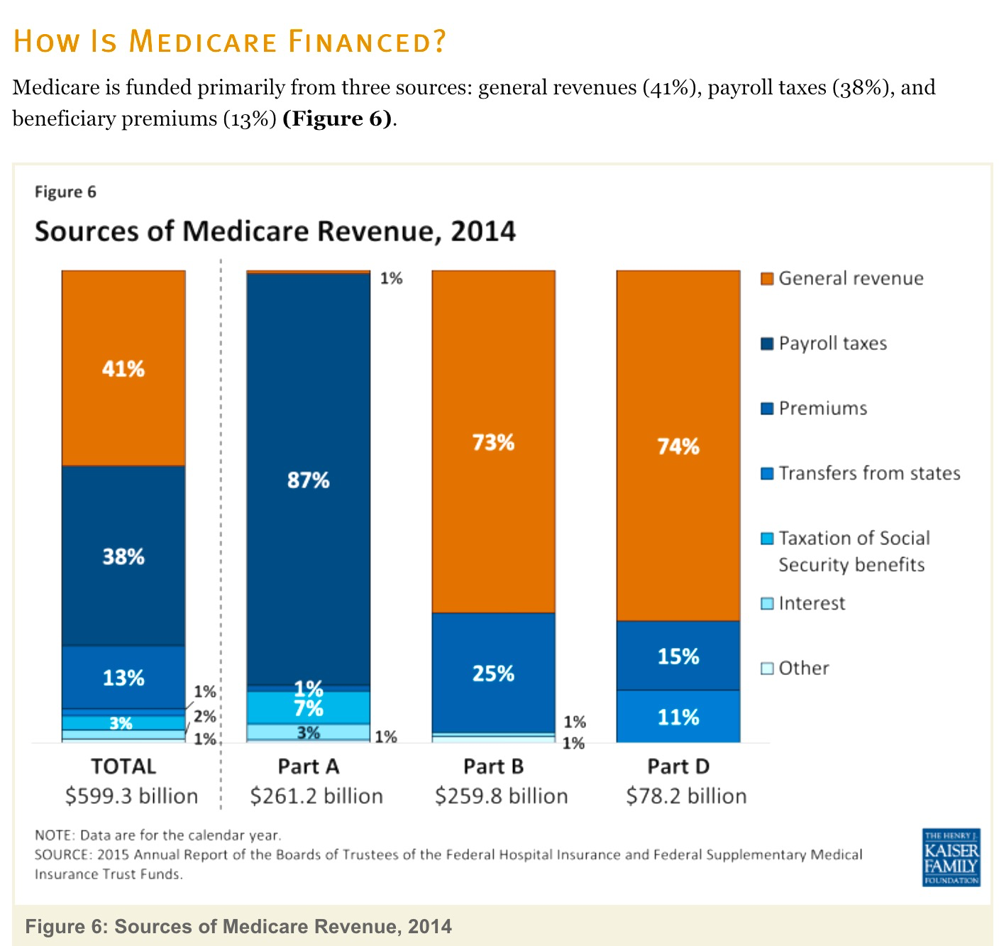 Medicare spent $613 billion in 2014 and 41% of that amount came not from payroll taxes and premiums, but from the federal government’s general revenue.
