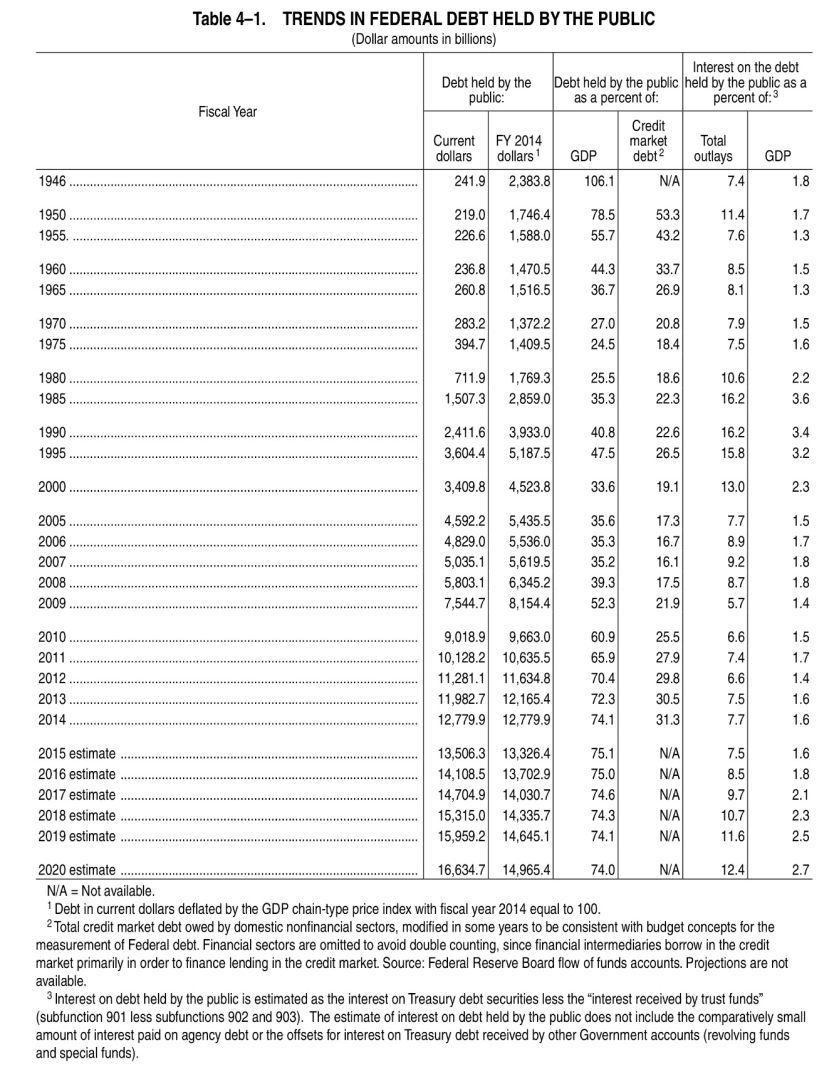 NOTE: The above numbers do not include government debt to government accounts such as Social Security.