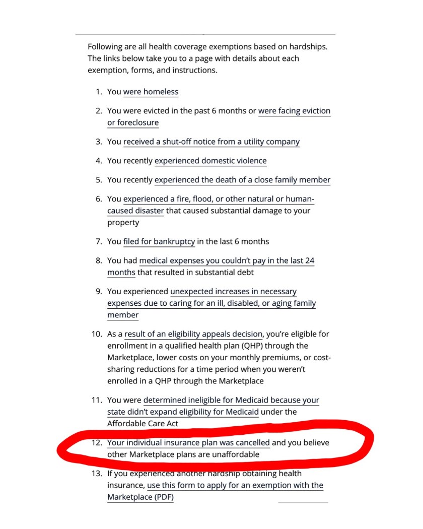 Some of these excuses seem rather strange. I circled one of my favorites. Excuse # 8 seems rather strange as well. If you had the insurance you were supposed to have in the first place … Oh well, it’s government bureaucrats writing this stuff😷. And remember, even if you owe the penalty, the only way it can be collected is if it’s deducted from your tax refund … are you scared?😡
