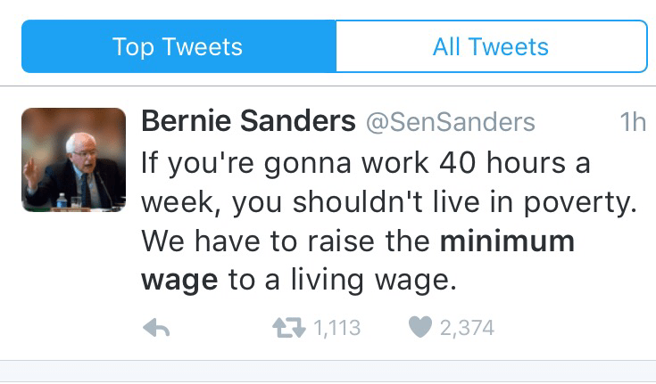 Old Bernie and others are on the minimum wage bandwagon. That’s fine, I too happen to think the minimum wage should at least be adjusted to reflect inflation since the last change. However, the message like the one below is designed to mislead voters (unless he is so naive as to believe what he says).