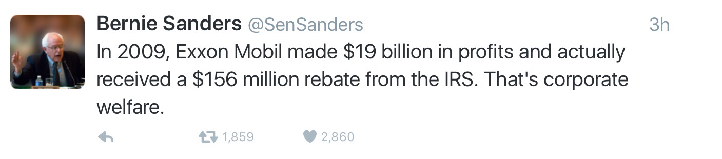 Sanders Tweeted the following 2-10-16 (probably some uninformed twenty something in reality). ๐Ÿ™„