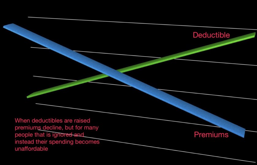 Within Obamacare exchanges insurance companies responded to the pressure for lower premiums by introducing higher deductible plans.