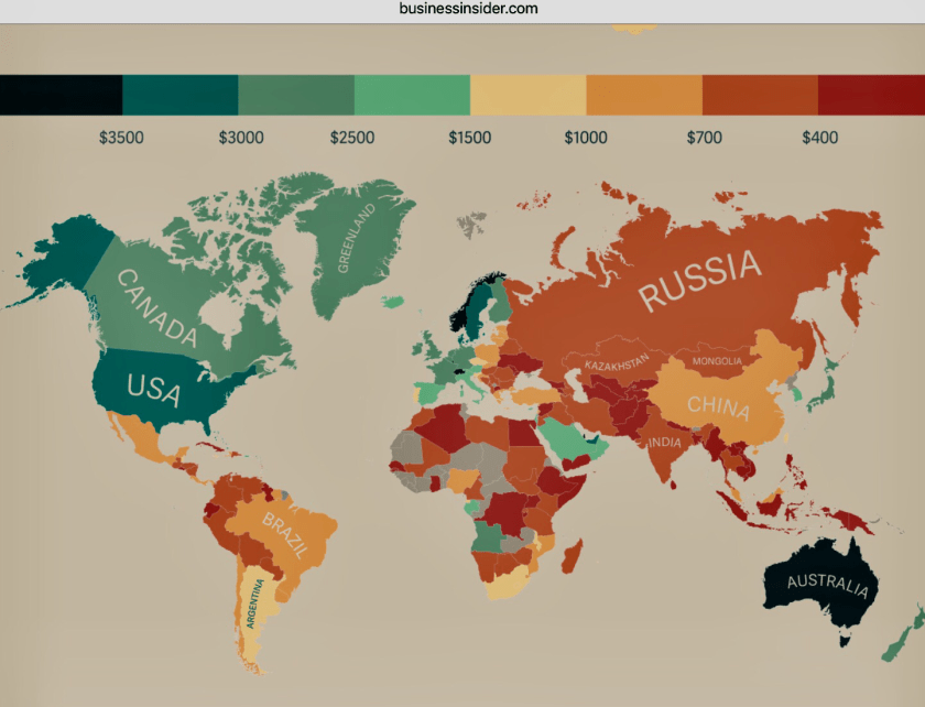 This tells you nothing much-without knowing the cost of living per country. $1500 may buy you more in China, than $3500 i the U.S. Plus I have never made $3500 per month, but have not missed anything that I wanted or any meals. Many people in the U.S. live on less than $3500 per month after taxes