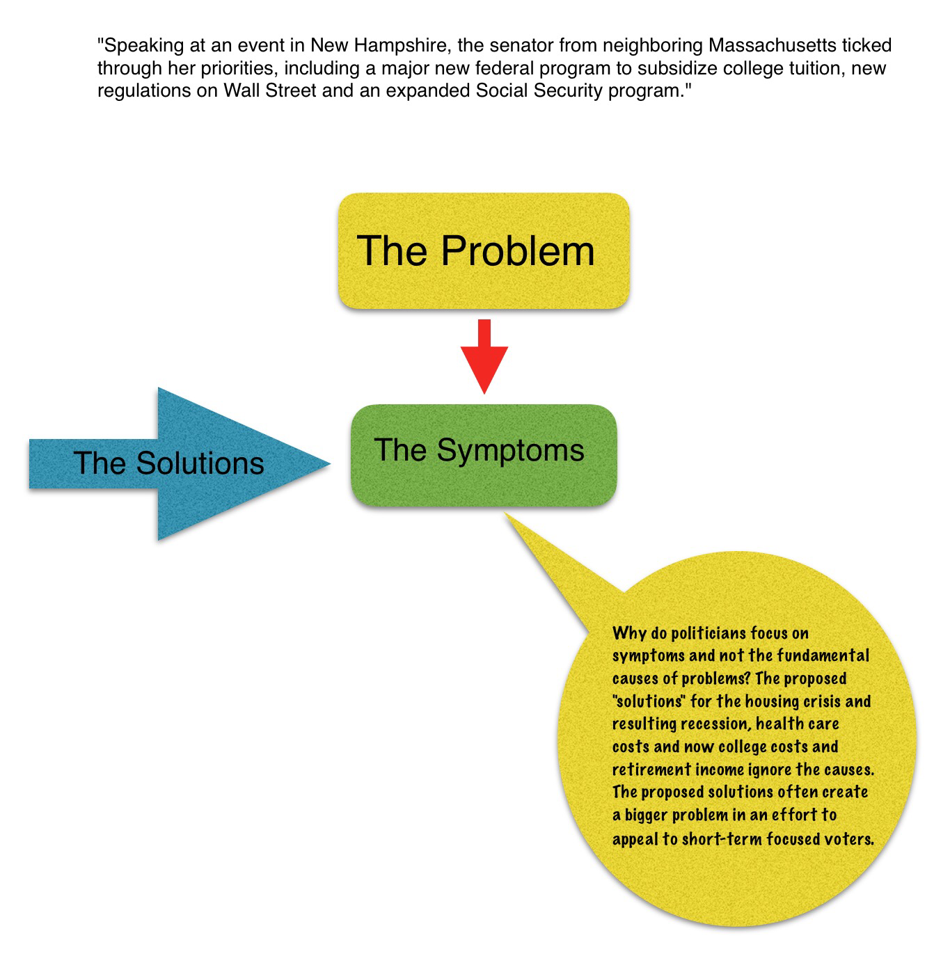 When there is guaranteed money from the government, prices rise and there is over demand caused by everybody wanting their share of free money. The number of business or suppliers grow to meet the demand and to get their fair share of the free money too. Think housing, college education, and healthcare. Get rid of the guaranteed money and market forces will cause prices to drop to what people can afford and the number of businesses to shrink to meet the demand. In the case of a college education maybe it will put value back into a basic BA degree instead of everybody having one you have to get an MBA to work as burger manager.