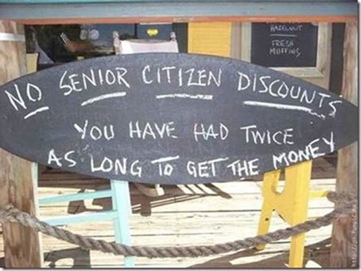 The above may sound funny, but it contains a great deal of truth. Simply because I am over age 65 I have received discounts virtually every place I have been in the last month. Why?