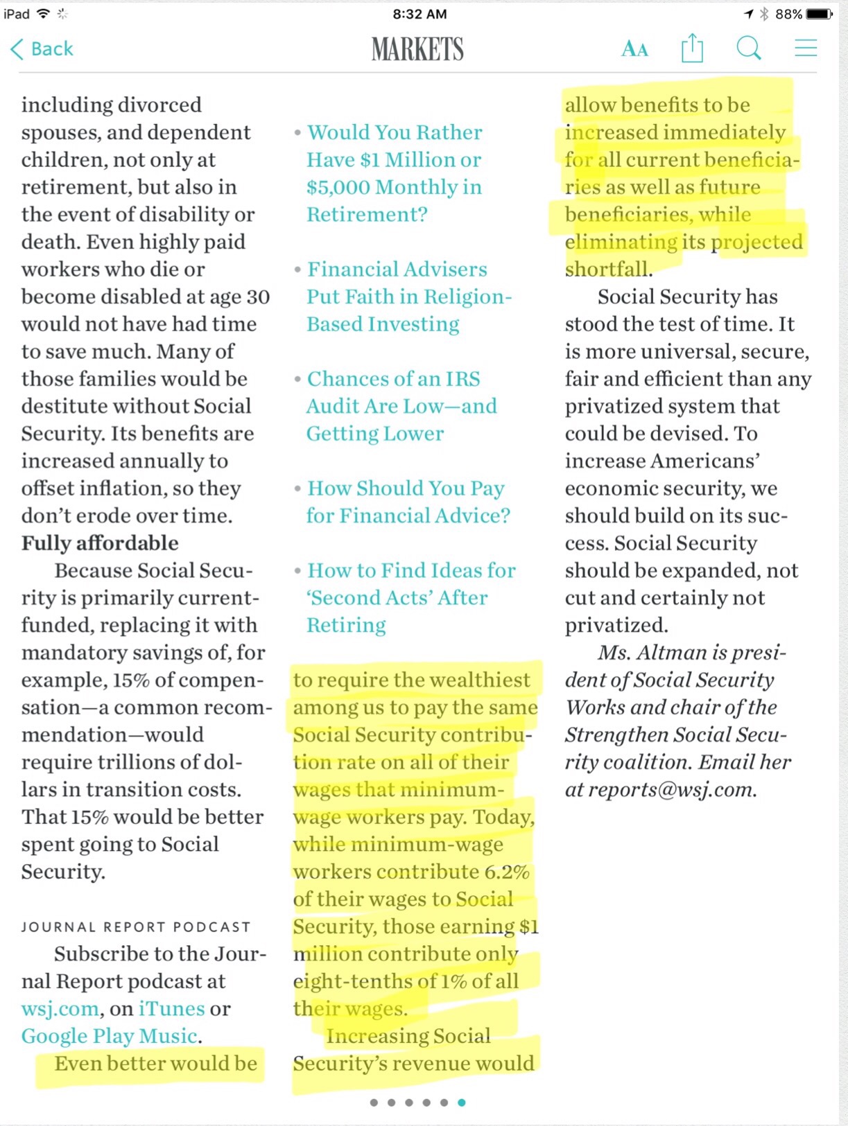 The following clip from the Wall Street Journal is part of the debate about fixing Social Security.