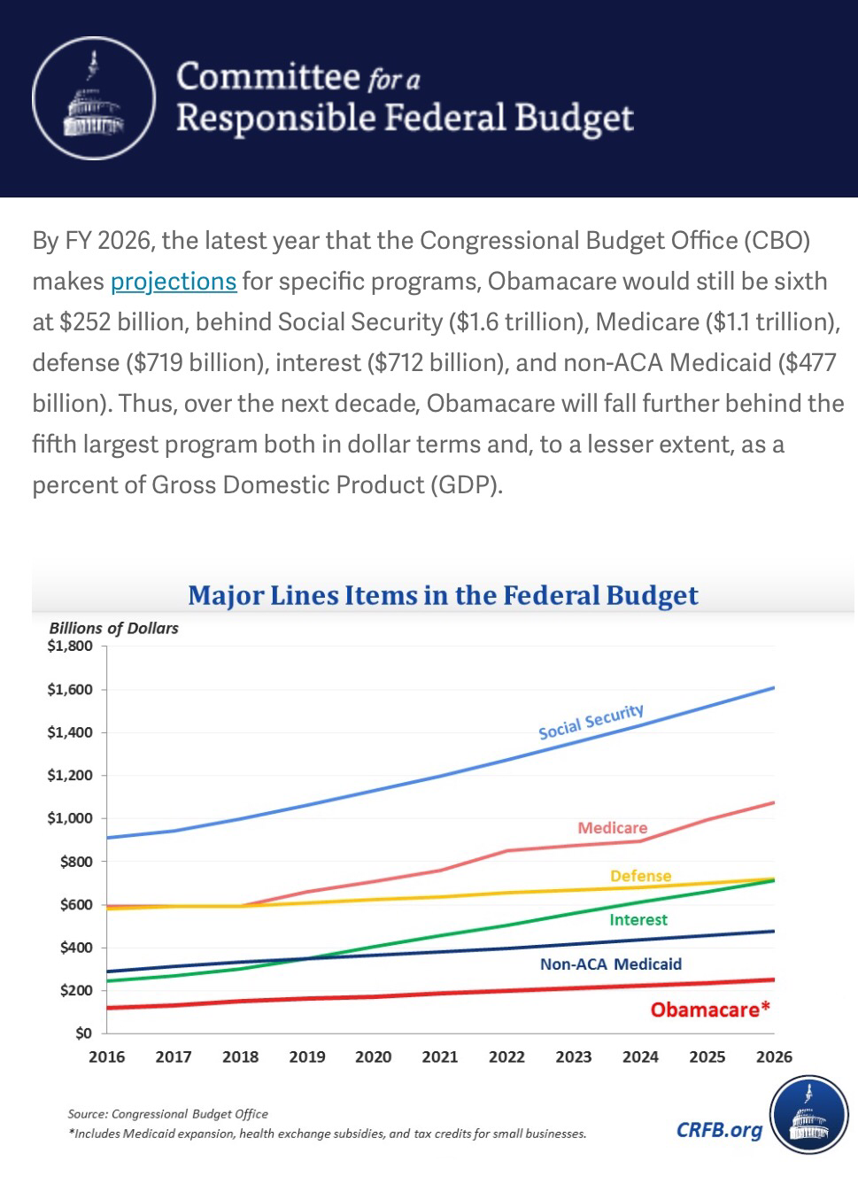 Obamacare is the six largest expense of the federal government. And for those who say government needs to do more for needy Americans, look at the five higher government expenses.