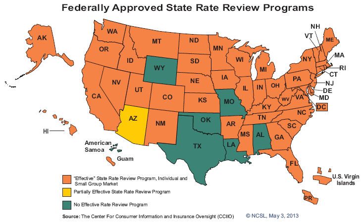 Source: http://www.ncsl.org/research/health/health-insurance-rate-approval-disapproval.aspx