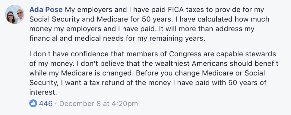 The problem for people like Ada is that they continue to think of social security as a savings account when it should be more accurately viewed as a Ponzi scheme. A Ponzi works well as long as there are plenty of new investors but once the new investors stop buying in, the scheme fails.
