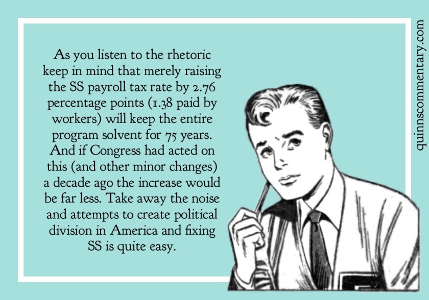 For over a decade politicians have ignored fixing Social Security and the recommendations by the Trustees and others. Making sure SS is sustainable is painless if changes are made gradually over time as required. Instead politicians create crisis for political gain … and that’s the truth‼️