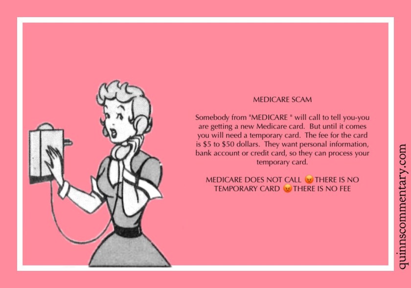 Alert for possible Medicare scam March 30, 2018 rdquinn Medicare Leave a comment Rate this:Share this: Click to share on Reddit (Opens in new window) Reddit Tweet Click to email a link to a friend (Opens in new window) Email Click to print (Opens in new window) Print Share on TumblrLike Loading... Related