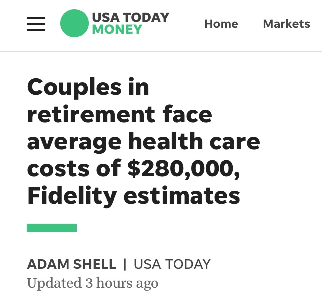 The $280,000 figure appears high to me. Then again, the average vs. the median, may be the answer. A couple who both have major surgeries can rack up many hundreds of thousands in health expenses. Their costs would of course being the “average” up.