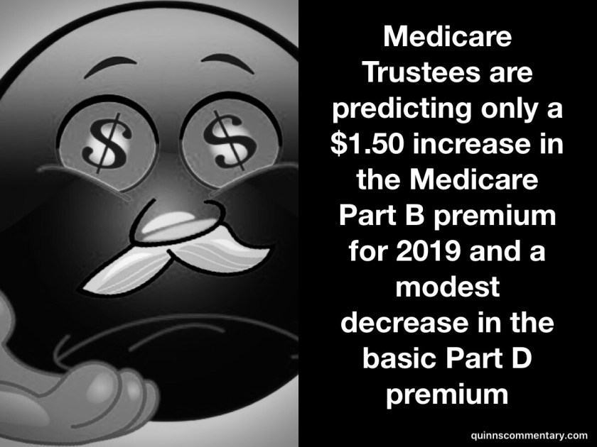 Medicare premium increases for 2019 to be modest September 4, 2018 rdquinn Medicare, Retirement Leave a comment Rate this:Share this: Click to share on Reddit (Opens in new window) Reddit Tweet Click to email a link to a friend (Opens in new window) Email Click to print (Opens in new window) Print Share on TumblrLike Loading... Related