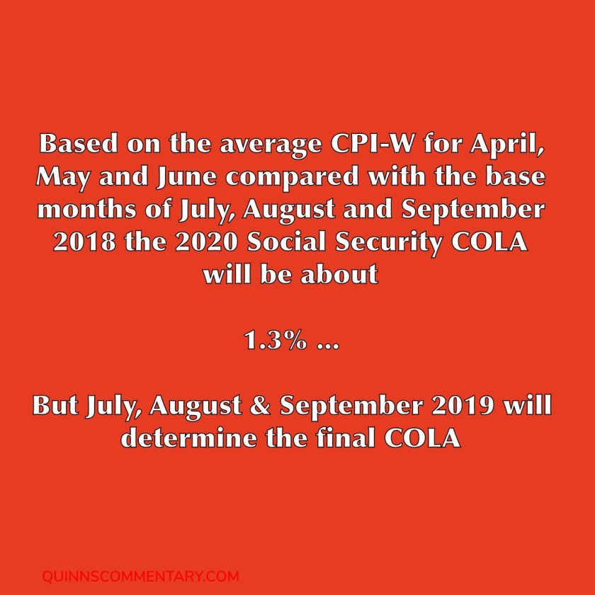 2020 Social Security COLA July 12, 2019 rdquinn Social Security Leave a comment Rate this:Share this: Click to share on Reddit (Opens in new window) Reddit Tweet Click to email a link to a friend (Opens in new window) Email Click to print (Opens in new window) Print Share on TumblrLike Loading... Related
