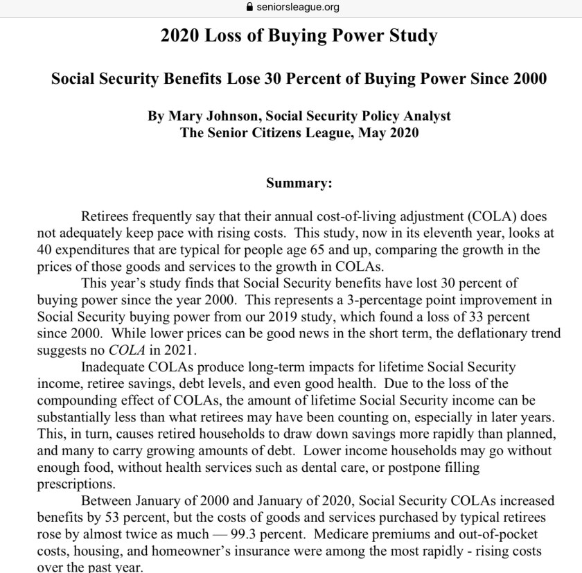 You can look at buying power or the loss of it on a macro basis, but that loss or lack thereof applies unequally across the retired population. Most retirees should have and could have planned for an increasing cost of living in retirement beyond counting on a COLA. But there are exceptions.