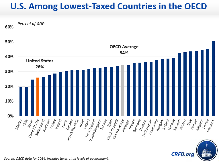 The United States has far from the highest taxation among developed countries, especially in Europe. We can only speculate as to the reaction in American if citizens faced the reality of paying for all they want. That would include higher income taxes, much higher payroll taxes, value added taxes and more.