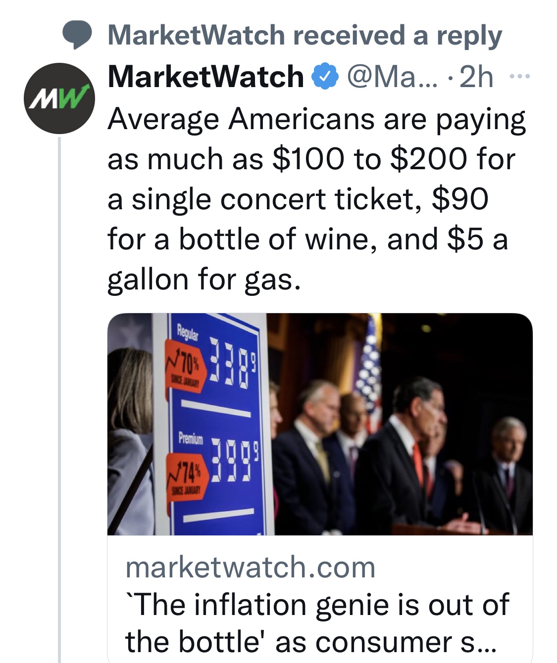 1. Because of inflation I am now paying $27 more to fill my 18 gallon tank than I did when I purchased my 2020 Ford Edge, Being retired I do not dive much, about 1 tank per month. The 5.9% SS cola in Jan will cover my increased Medicare premium and my gas, but not much else. I am sure glad I have other retirement income besides SS. I believe many more low income families will be hurt much more by inflation than the retirement class. This means higher benefits being paid out from all our safety net programs. I guess the corrupt political elite will not be happy until most American families have to turn to these programs for help. At some point taxes will have to go up just to cover the interest on the debt. Even a 25% Federal income tax for all will not fix this mess.