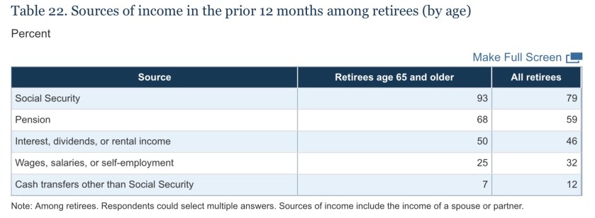 This included 59 percent of retirees with income from a pension; 46 percent with interest, dividends, or rental income; and 32 percent with labor income.