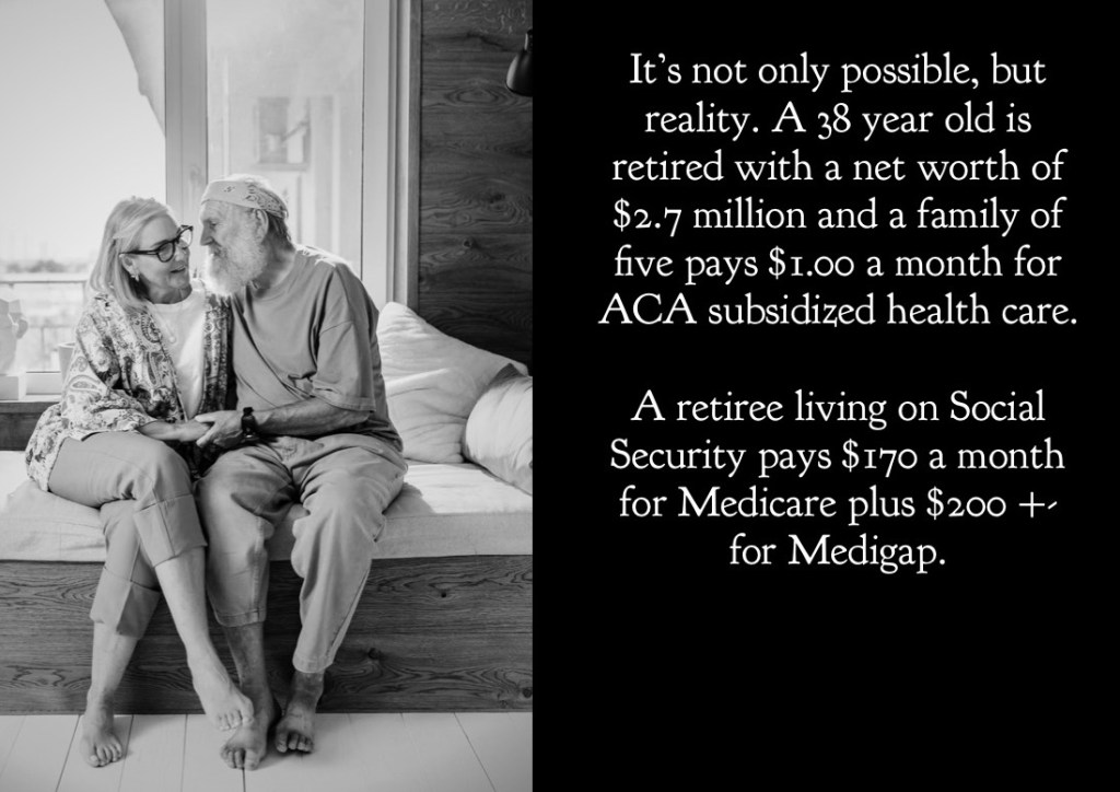 That 38 year old keeps his reported income to around $40,000 a year to pay the $1.00, but a retiree earning the same or less still pays much more.