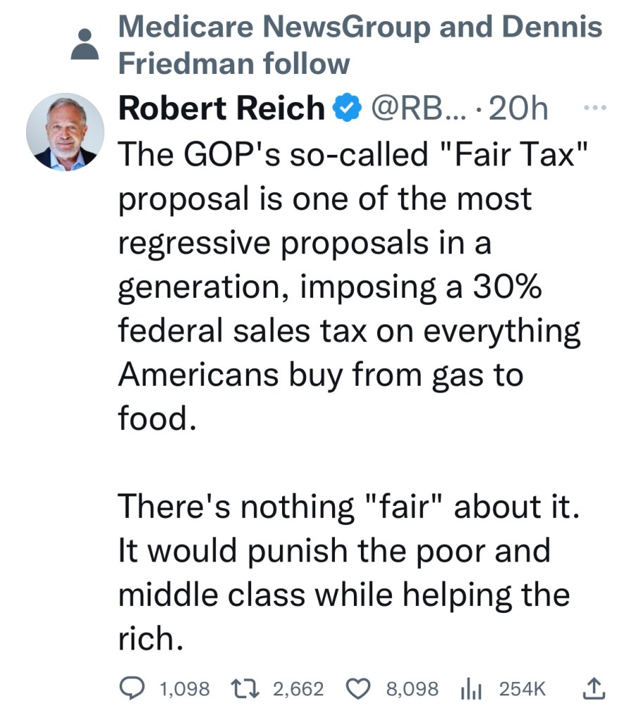 A National sales tax with exceptions for food, shelter and medicine/medical care would retain some progressivism. In addition, it would force those in the underground economy ( those off the books, drug dealers, etc) to contribute to the economy.