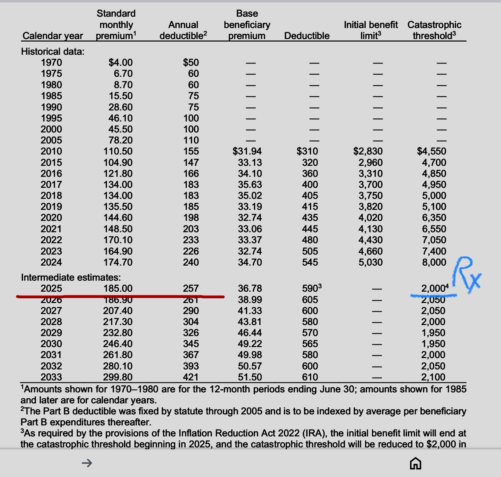 Might as well say it, probably most people are not aware, and may object. I take my pension for granted, and don’t normally check the details. Last time I noticed, part B was just over $100/month. I had no idea it had gotten so high.CalPERS, at least for my classification*, not only pays for Medicare for myself and my wife, they also reimburse me monthly for the part B deducted from Social Security. My direct deposits monthly are not itemized, so, out of sight, out of mind, until end of year tax forms.