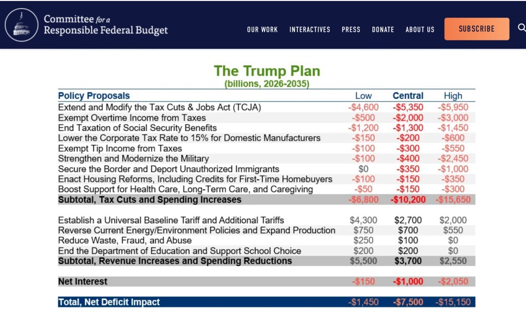 The following estimates were prepared by the Committee for a Responsible Federal Budget.