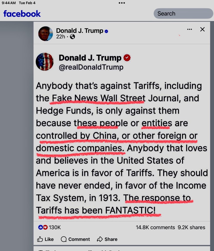 The truth is that the quest for tariffs is to generate revenue to offset the cost of extending tax cuts, not for middle class Americans, but the wealthy. Tariffs will hide the costs in prices.