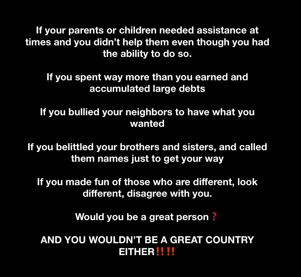 And, America is great – even though all of us, frankly most of us are not great, and all of us have flaws.