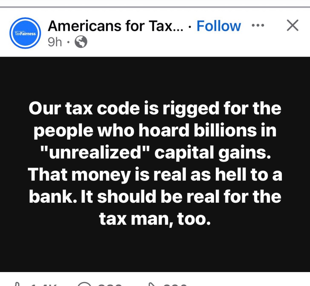 Throwing around “billions” is inflammatory to imply unfairness. Whether it is billions, millions or thousands the same principles apply…you pay taxes on what you actually gain, not on what can disappear the next day.
