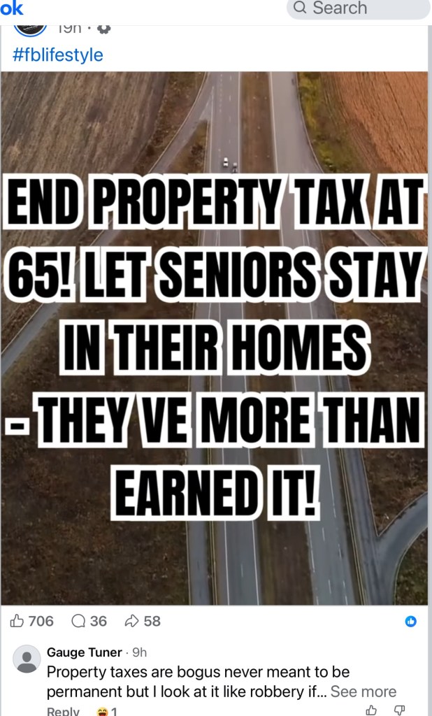 I don’t have a problem paying these taxes, especially school taxes. I don’t see it as unfair. My age and the fact I haven’t had a mortgage for fifteen years is irrelevant.