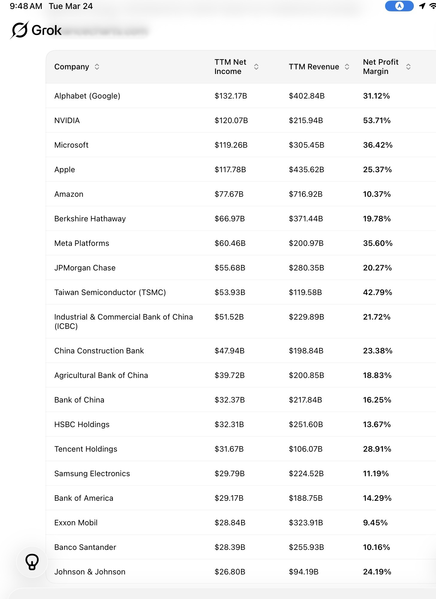Look at the following list. This is the top earning companies in the US. It shows net profit margins.