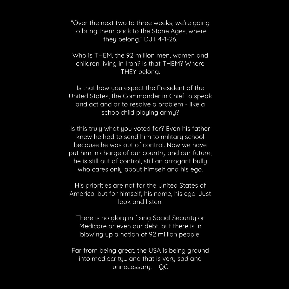 Trump ADMIRES Putin, Xi, and Kim Jon Ing BECAUSE their enemies ‘disappear’. Power of life over death, or vice versa. That’s what Trump wants, and now has. He’s not just ruining the U.S. He is ruining the world.