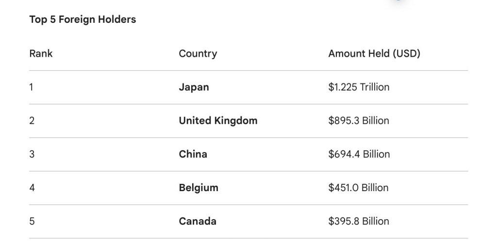 Here are the top foreign government holders of U.S. Treasury securities as of January 2026: